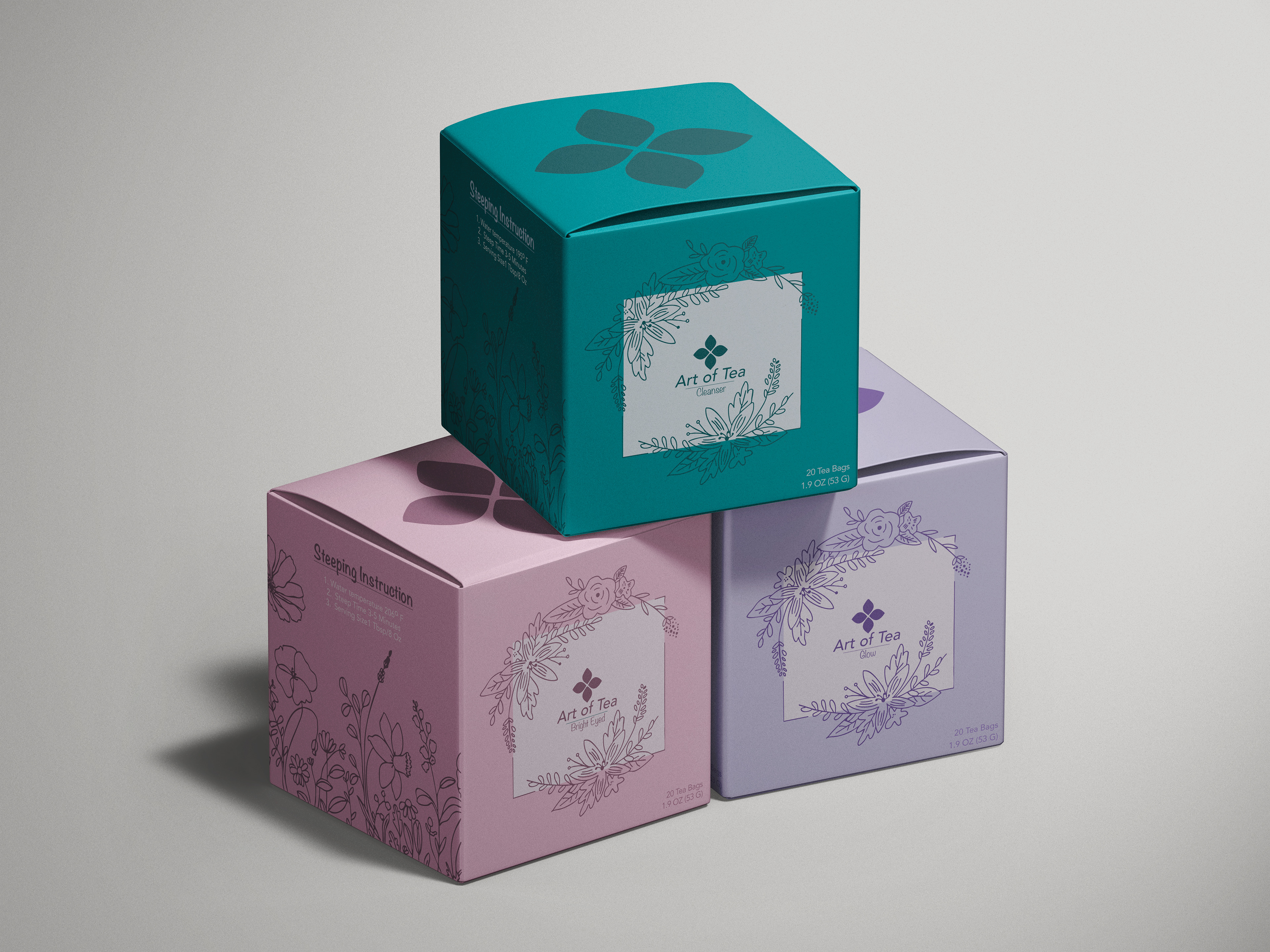 Basing the company Art of Tea products designing a packaging that shows the organics of the tea being sold. Making people want to buy a simple color pallet not using a lot of color but using different values of one hue.